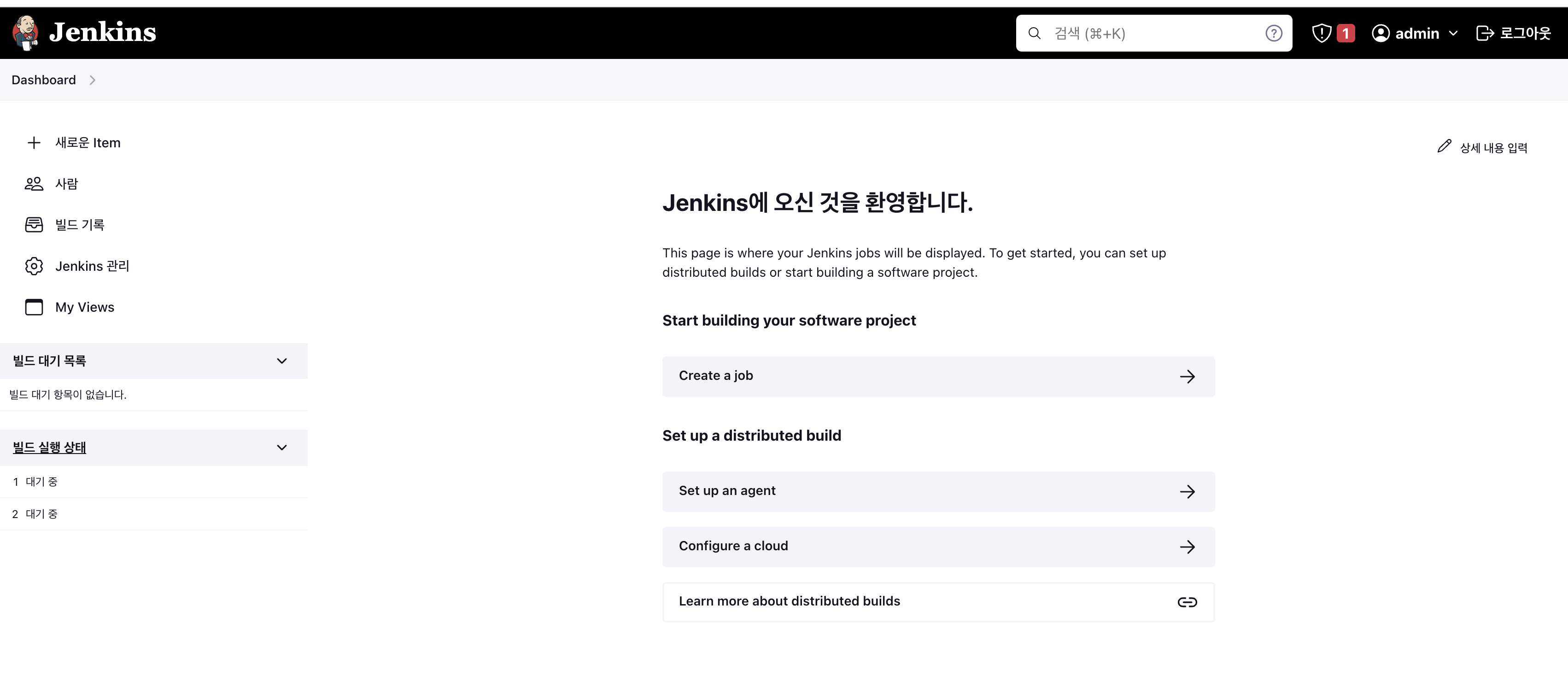 해당 Url로 들어오면 실행 된 jenkins를 볼 수 있다.