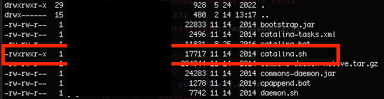 이러할 경우 자신의 설치(혹은 압축 해제 한) 톰캣 경로의 bin 파일로 가서 catilna.sh의 권한을 775로 바꾸어 주면 된다!