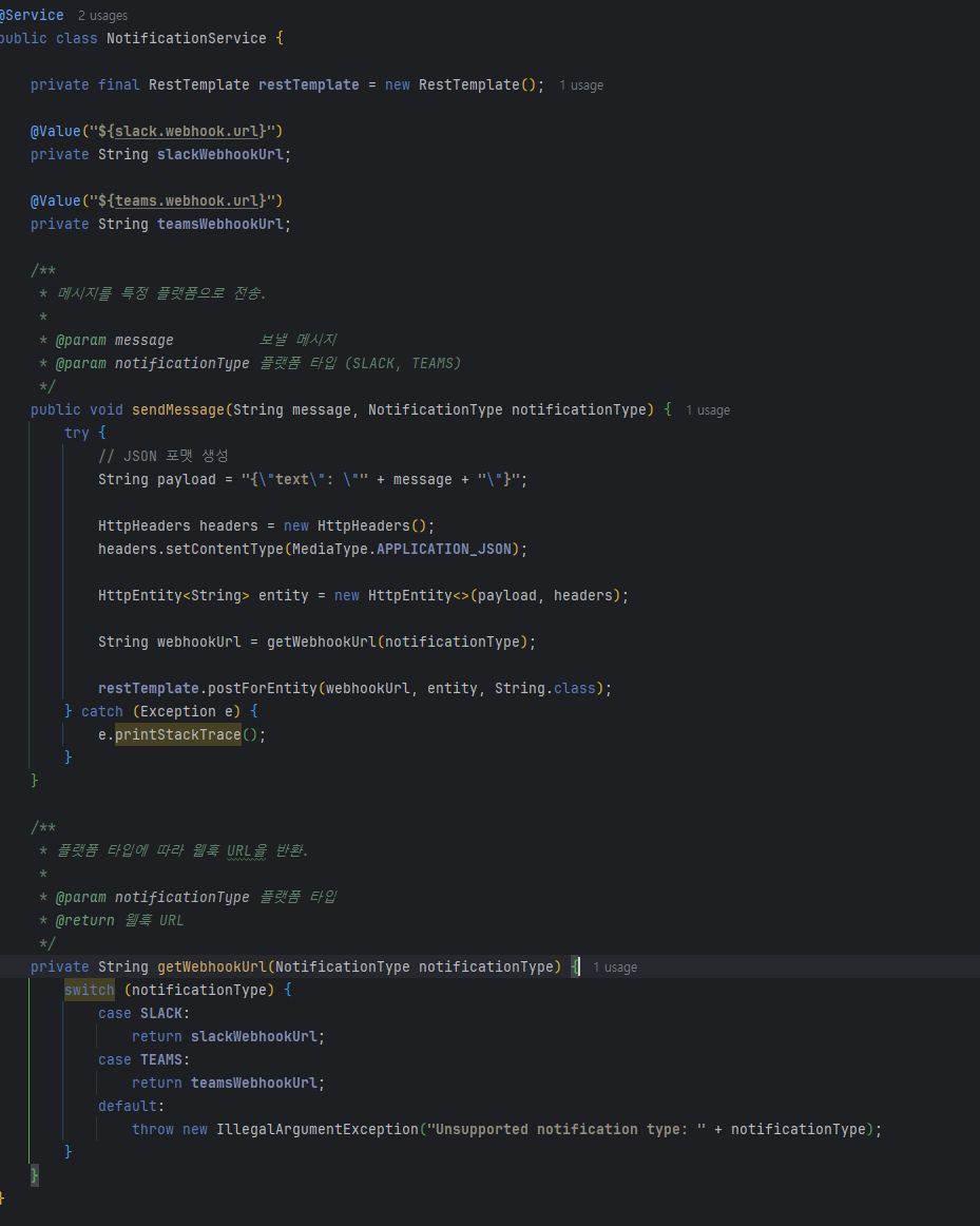 처음에는 슬랙 service 하나, Teams Service 하나 만들다보니