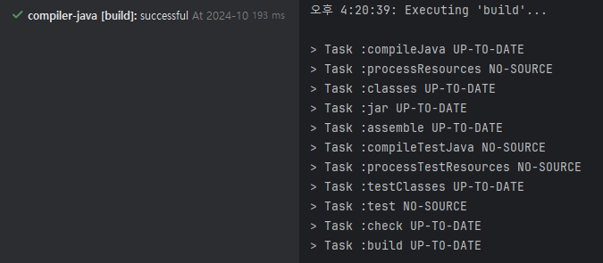 3번 진행 Java 평균 BUILD SUCCESSFUL in 1XXms