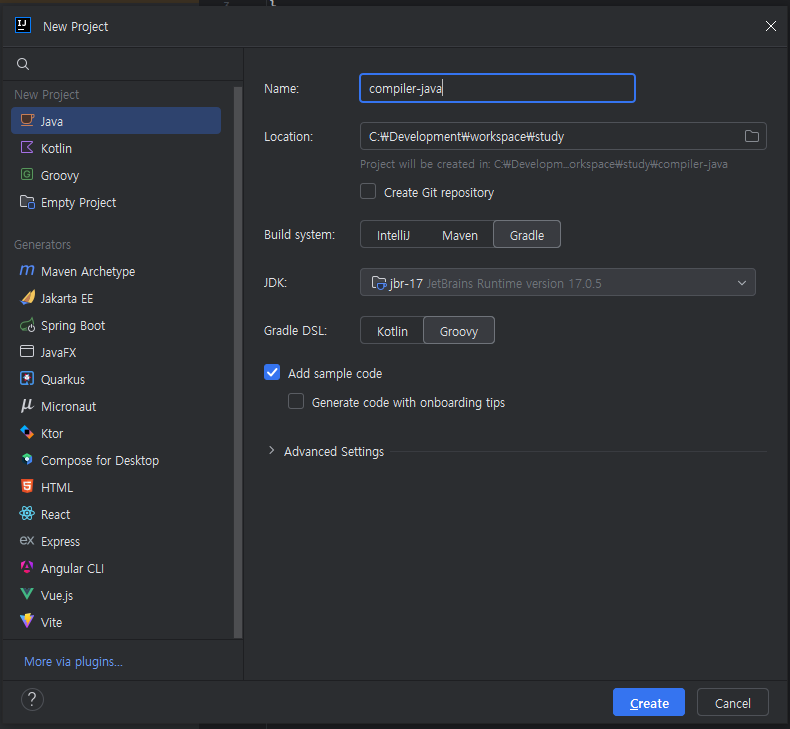 자바의 경우 Gradle Build를 수행할 때 Task가 적은 반면