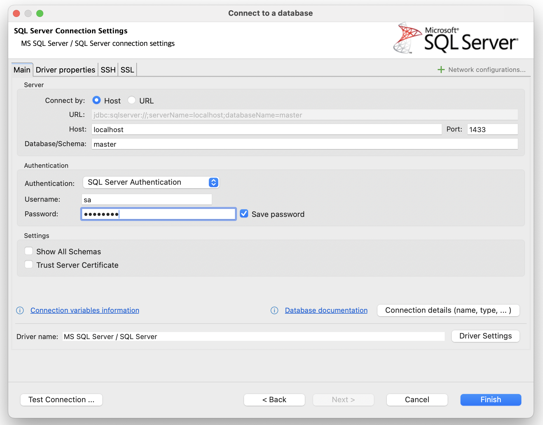Test Connection ... 클릭