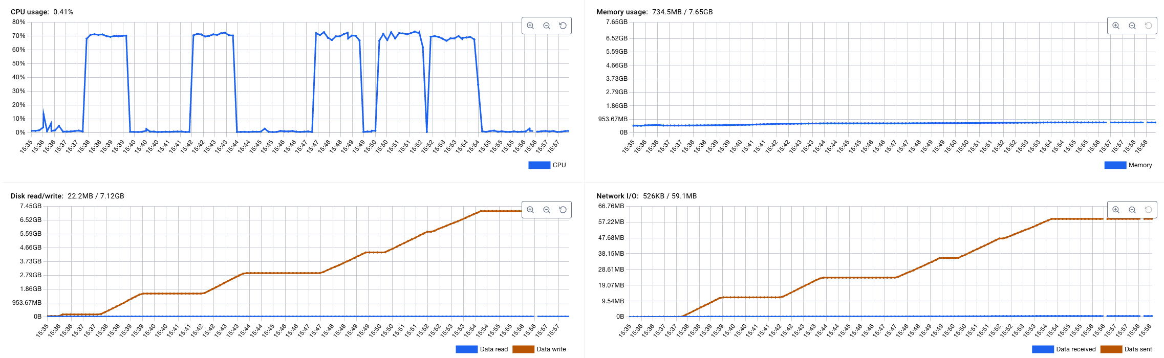 데이터를 삽입하기 위해 잠깐 Cpu가 튀긴 했지만 무난한 수준이다.