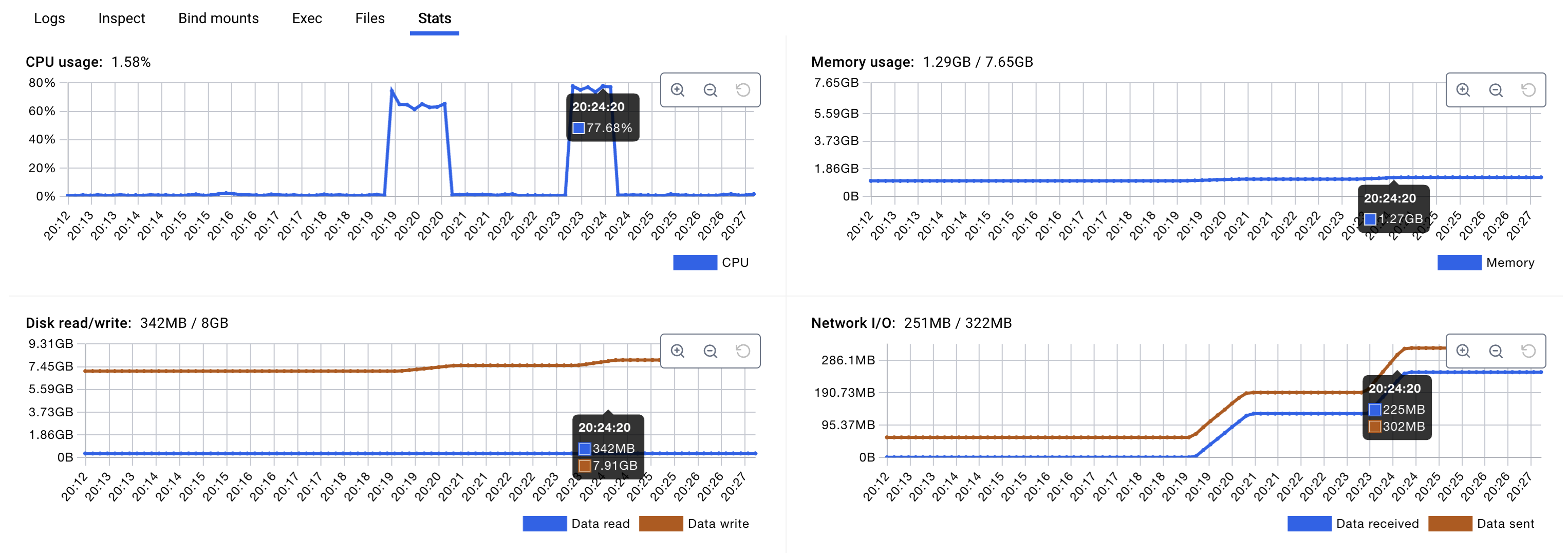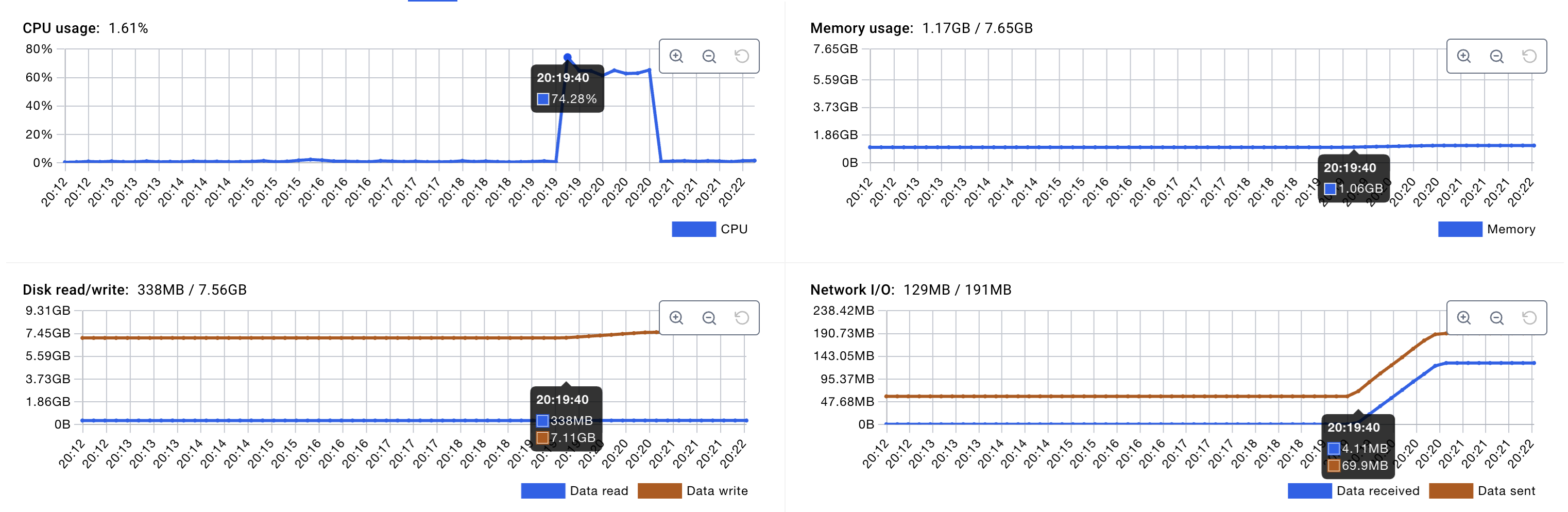 | chunk 크기 | 실행 시간(ms) | CPU 사용률 (%) | 메모리 사용량 (MB) |
