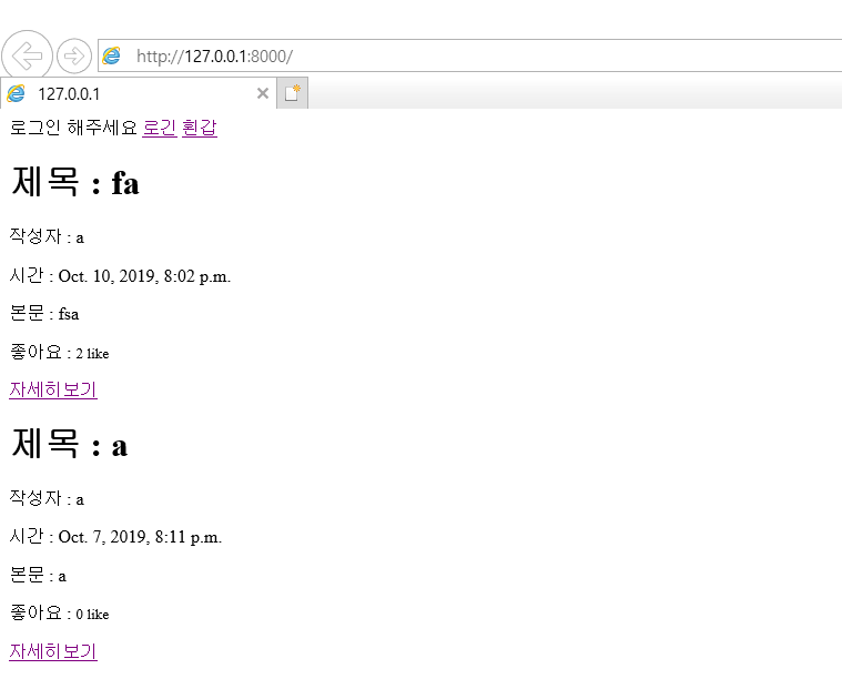 화면에 나타나게 하겠숩니다아아 detail.html로 넘어가요