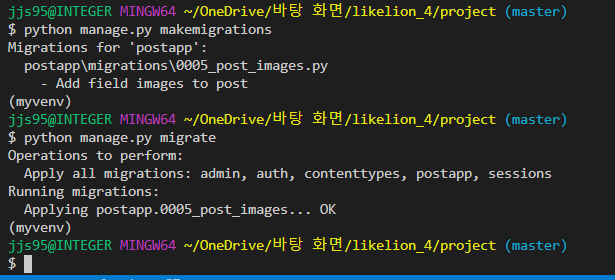 postapp/models.py에 img파일을 받을 수 있게 폼을 만들어 줍시다.