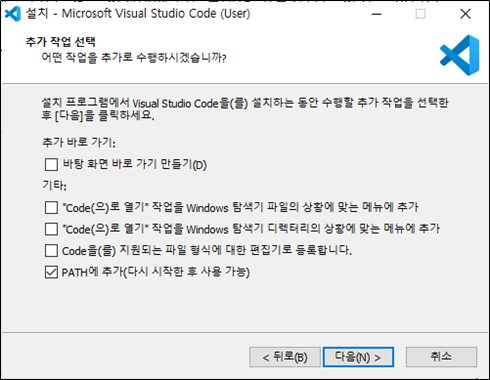 이 부분에서는 PATH가 디폴트 값으로 체크가 되어있는데 꼭 확인해주세요