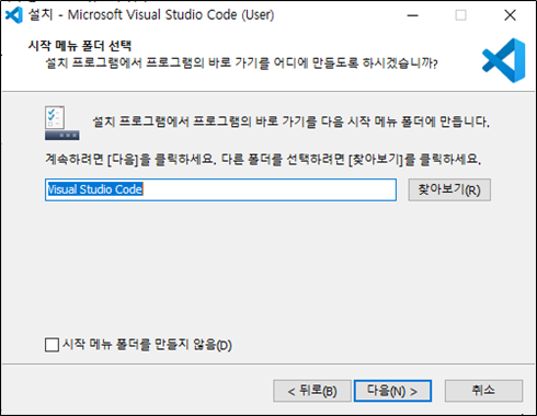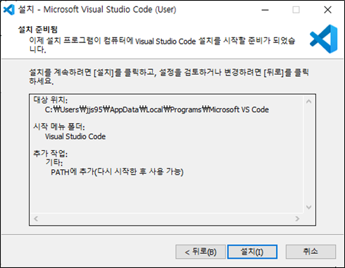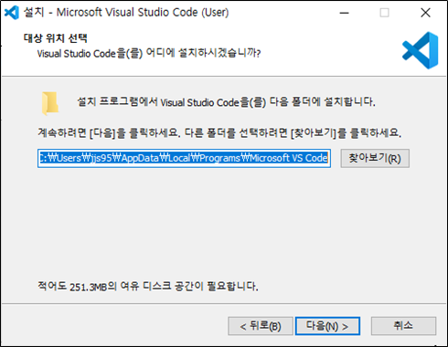 vscode 설치 경로를 확인해 줍니다. 저는 설치할 때 되도록이면 기본값으로 설치를 합니다.