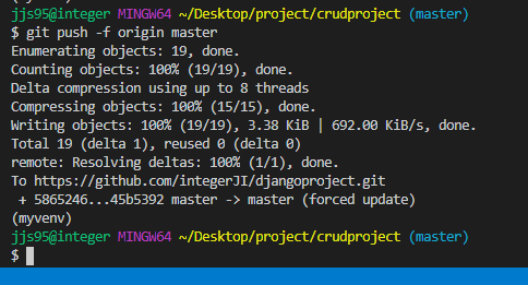 강제로 push해도 됩니당 ( 아직 처음이니 날릴파일도없고 )