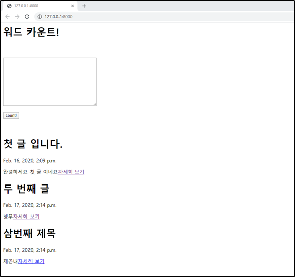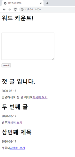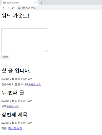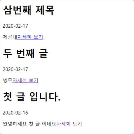 | [django 실습] 게시판 만들기 - detail page 만들기 (0) | 2020.02.18 |
