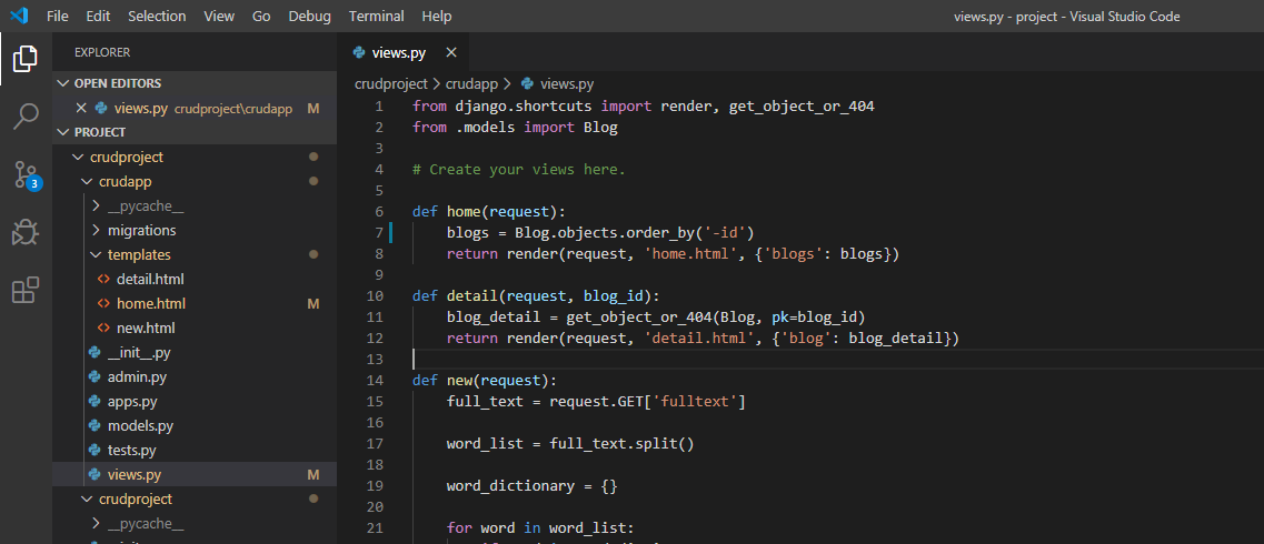 views.py에서 리스트를 불러오는 함수는 home입니다.