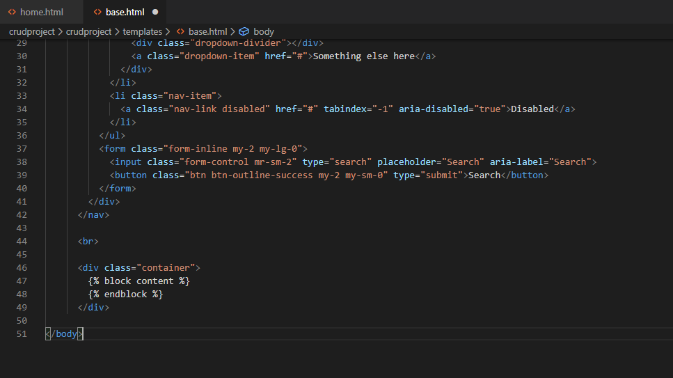 crudproject폴더에 templates 폴더 생성 그 아래에 base.html 생성