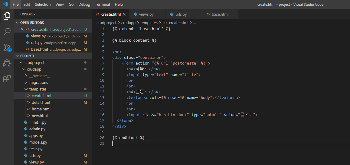 crudapp/templates/create.html 만들기