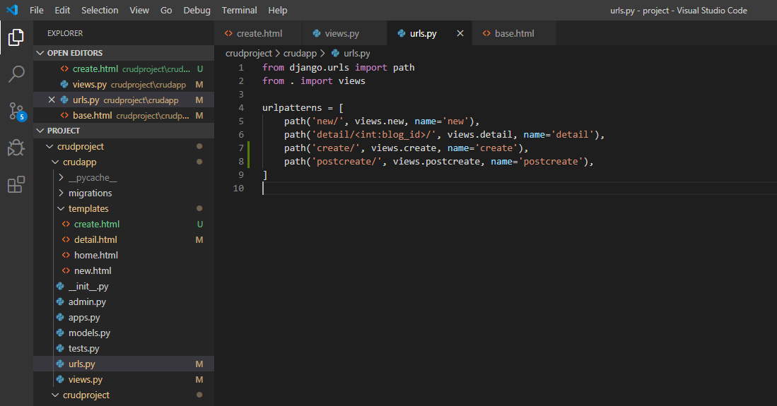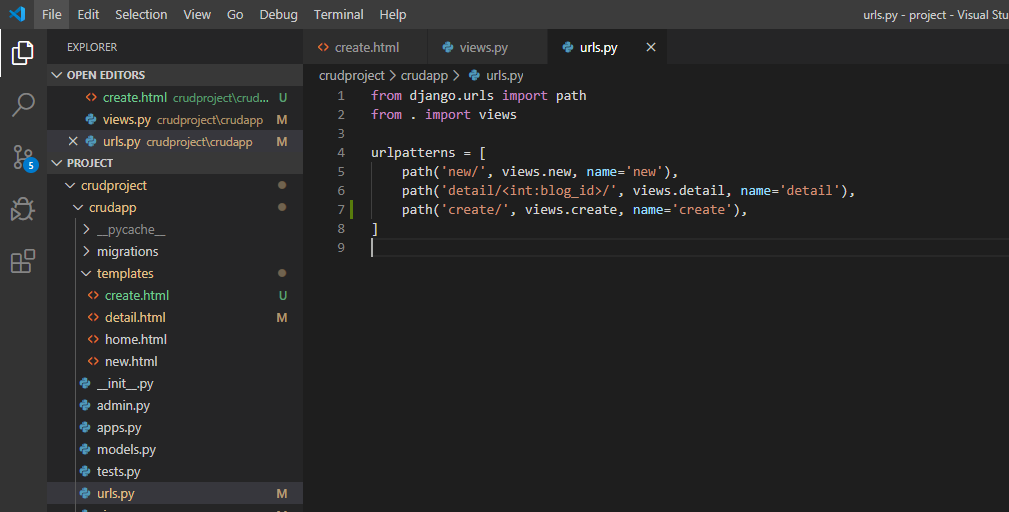 crudapp/urls.py url 설정하기