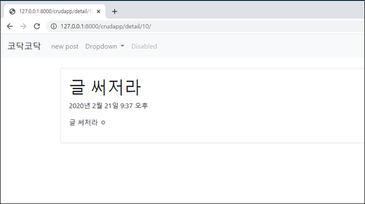 해당 글로 바로 페이지 생성 url은 '/crudapp/detail/'에 해당 blog.id로 이동