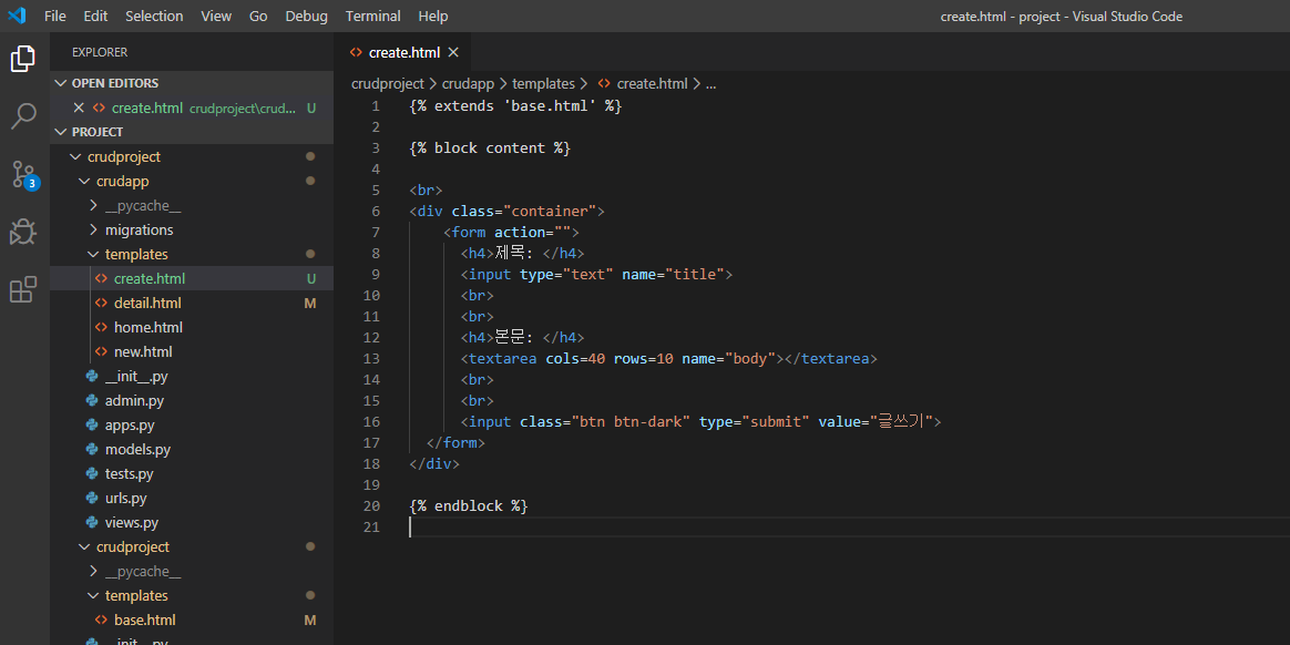 crudapp/templates/create.html 만들기