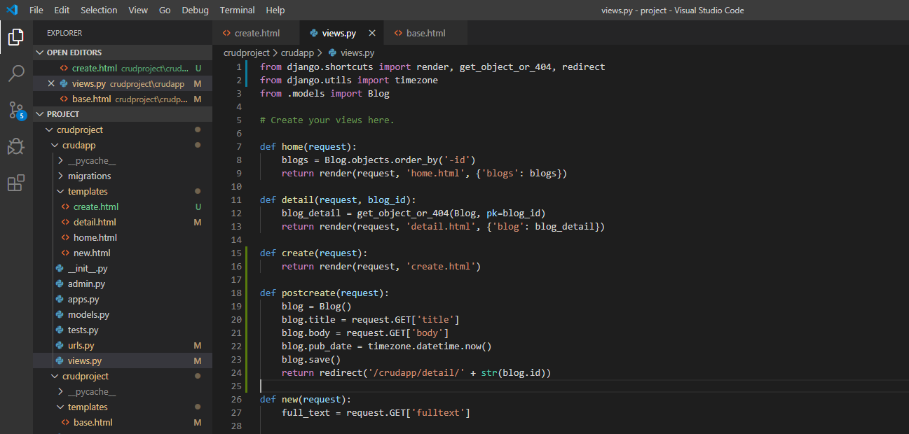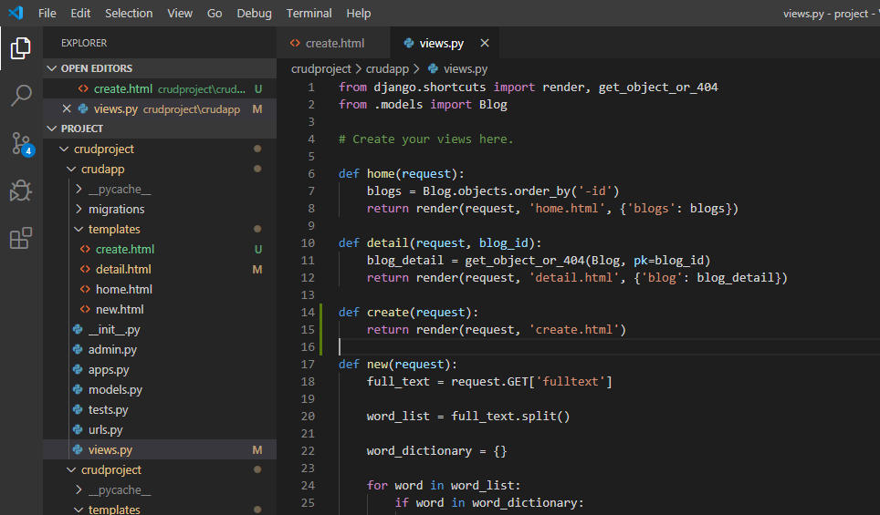views.py create 함수 설정